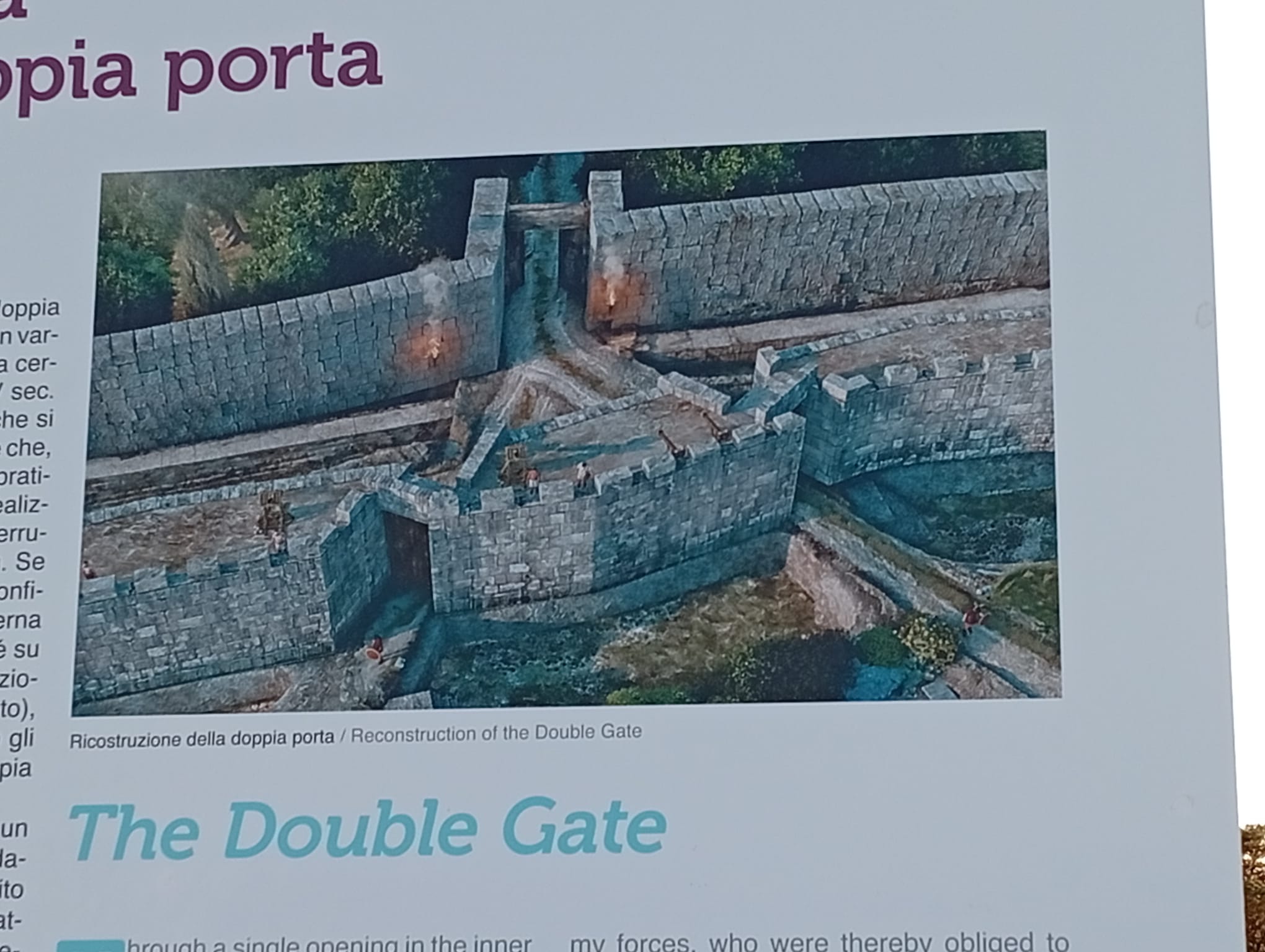 Le mura erano costituite da una doppia cortina con riempimento all’interno di terreno e sassi ed alte (secondo le ricostruzioni degli archeologi) circa 12 metri. Mura immense, dunque, e possentissime.