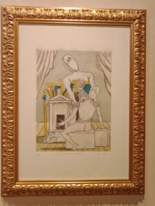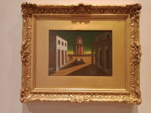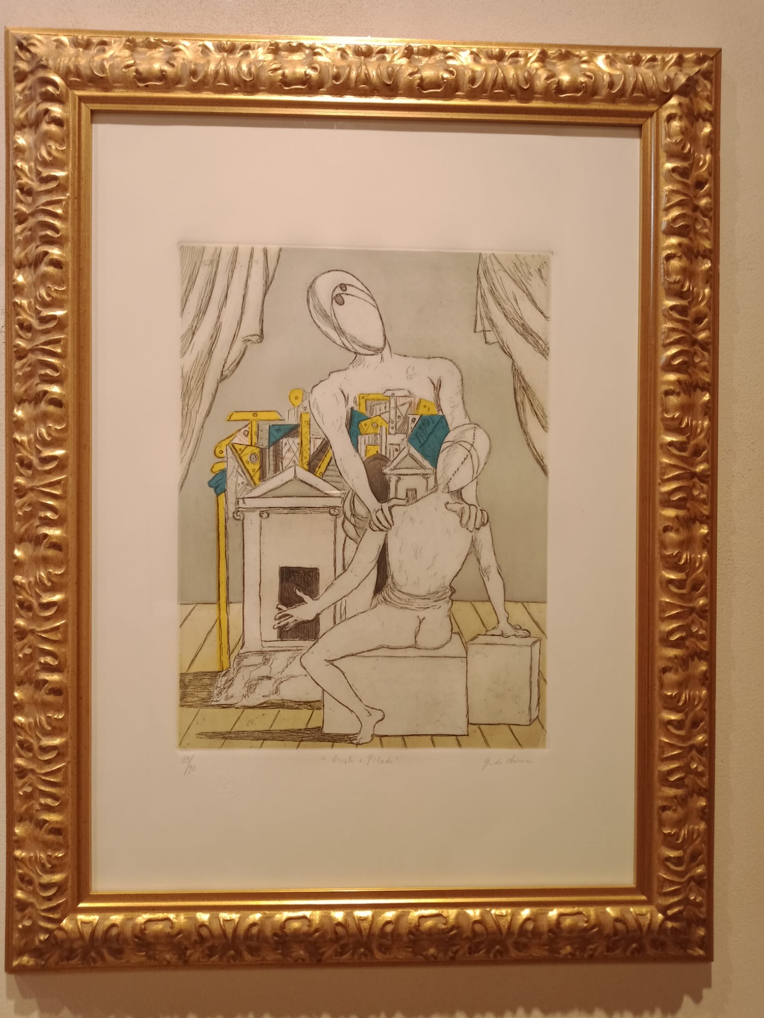 Le ultime due sale sono quelle i cui nomi in mostra sono certamente molto più noti al grande pubblico. La sesta sala è infatti dedicata ai Maestri della prima metà nel Novecento, e quindi Giorgio De Chirico, Giorgio Morandi, Filippo De Pisis, Massimo Campigli ed altri; li accomuna una pittura innovativa che però convive con richiami classici. Campigli strizza l’occhio alla pittura etrusca; e due opere metafisiche di De Chirico sono sospese tra sogno e realtà, in un paesaggio che evoca silenzio e mistero.