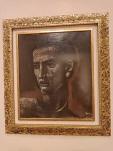 Nella prima sala, i ritratti epidermicamente dettagliati del contemporaneo Andrea Martinelli (tra i quali uno dello stesso avvocato Giuliani) e, per esempio, la grande “Luna Rossa” di Paola Romano riconducono a dinamiche introspettive, legate a riflessioni di natura psicologica ed esistenziale.